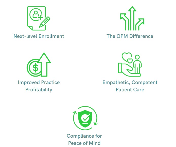 Next-level EnrollmentOur Enrollment Program (EP) is essential to the success of your CCM program.We partner with practices and provide access to our app to on board andeducate patients about the program's value, while ensuring CMS compliance.The average in-house enrollment program enrolls 10 percent or less of eligiblepatients, while OPM achieves enrollment rates of 50% and more. Here's how it works: